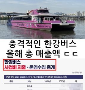 Read More충격적인 한강버스 올해 총 매출 ㄷㄷㄷ