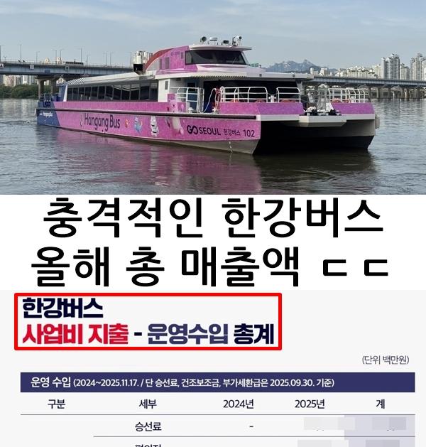 충격적인 한강버스 올해 총 매출 ㄷㄷㄷ 운영한지 1년도 안됐는데 ㄷㄷㄷ