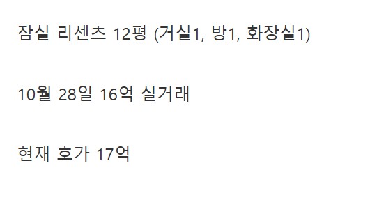 현재 잠실에서 16억에 거래된다는 아파트
